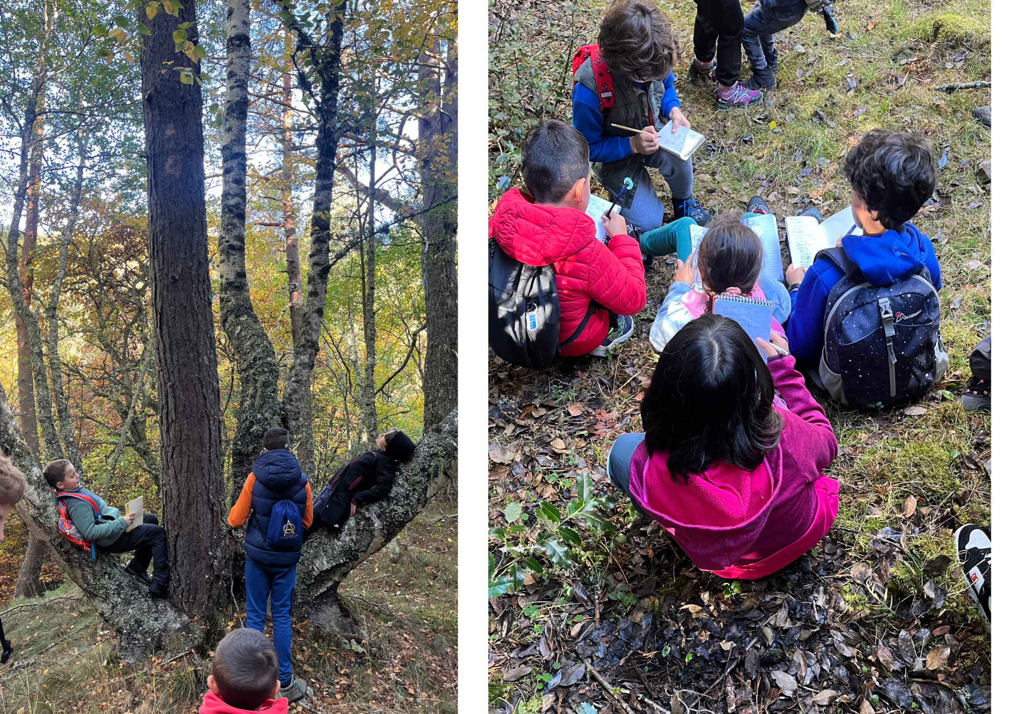 MARÍA Y ROBER NOS EXPLICARON LOS FRUTOS DE MUCHOS ÁRBOLES, COMO EL HAYUCO QUE SE ABRE EN ESTA ÉPOCA Y GRACIAS A MUCHOS ANIMALES EL BOSQUE SE REPRODUCE.